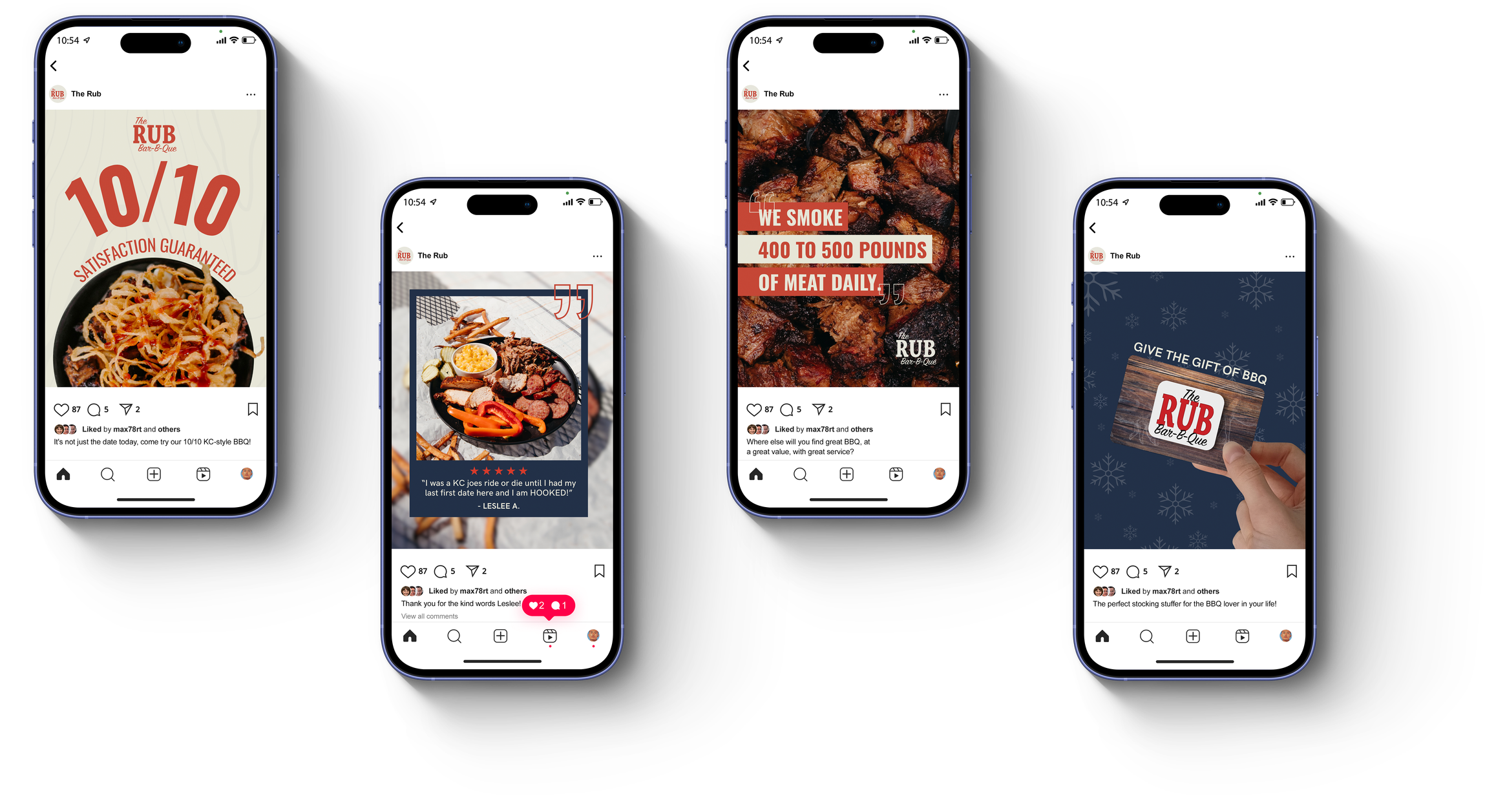 I designed social media graphics for The Rub, a local barbecue restaurant in Kansas. Working within their existing brand guidelines, I explored layout, typography, and color to create engaging visuals. The designs aimed to reflect the restaurant’s authentic and approachable personality.